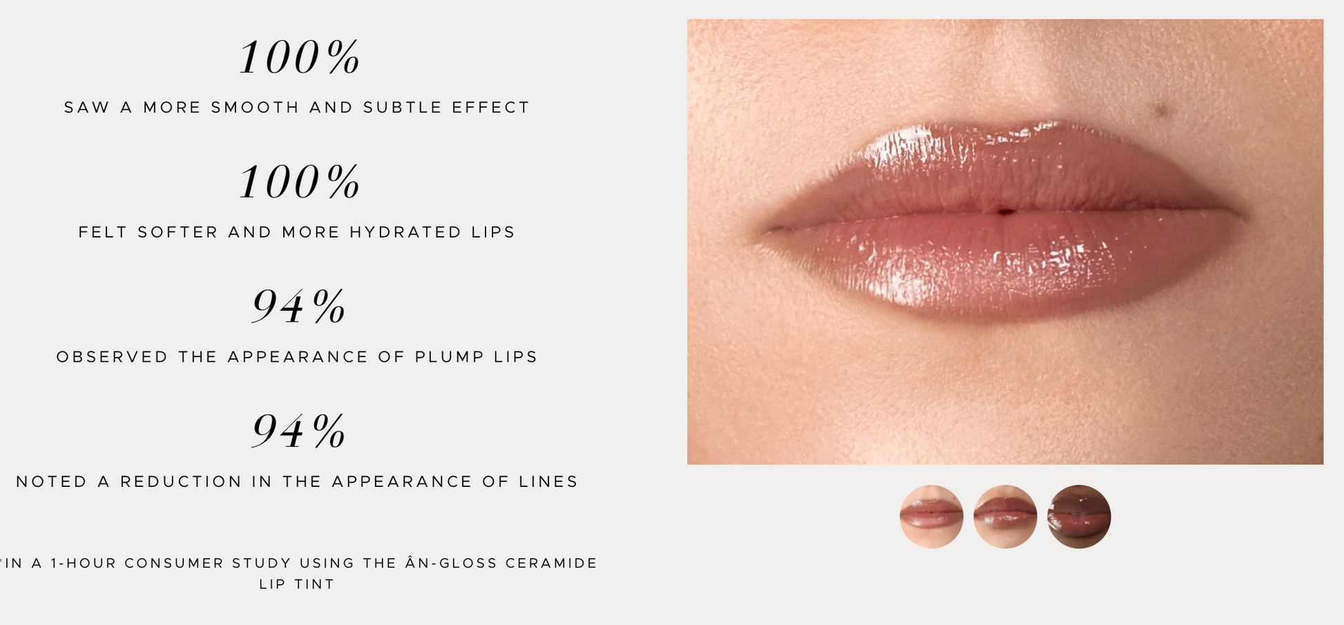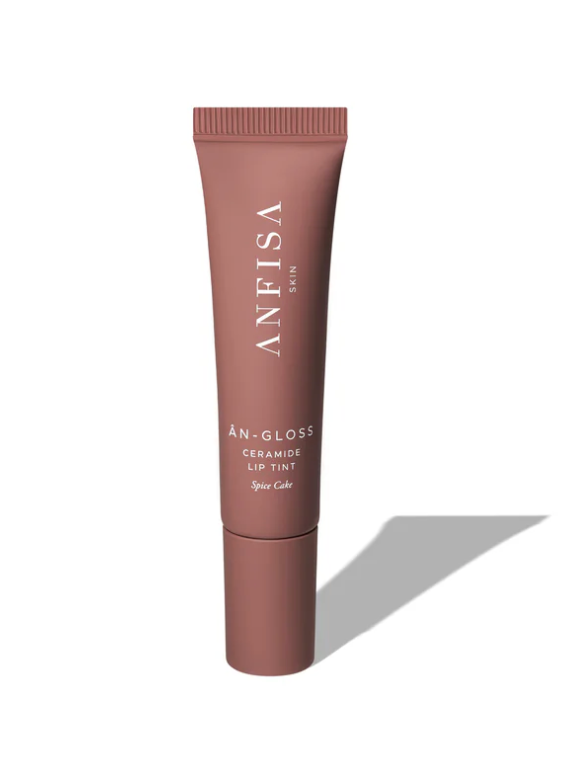 Meet Spice Cake: The award-winning ÂN-GLOSS formula, in a sheer, rosy brown lip tint. Powered by CeraBind Technology™ and infused with five skin-identical ceramides and two plumping peptides, it deeply hydrates and enhances fullness, while Cooling Tip Technology™ soothes on contact.